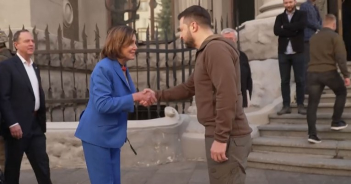 Украинскиот претседател Володимир Зеленски објави видео од посетата на Киев на претседателката на американскиот Претставнички дом Ненси Пелоси.