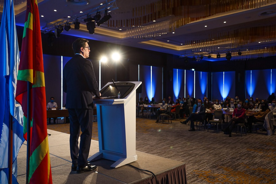-Како човек кој дел од својата професионална кариера ја поминал во образованието, апсолутно сум согласен дека без ставањето на образованието и науката на приоритетна позиција не можеме да очекуваме побрз економски развиток и севкупен општествен напредок. Образованието, здравството, функционирањето на правната држава, заштитата на животната средина се клучот за квалитетен живот. Потребно е да се справиме со базичните работи како сузбивање на дивите депонии, депонирање на сметот, почитување на регулативите за загадување. Во овој контекст целосно се сложувам со мислењата на младите изразени во работилниците дека ни се потребни системски и креативни решенија за да ја заштитиме животната средина. И во овој сегмент, ќе нагласам, клучно е нашето однесување и како поединци, рече шефот на државата.