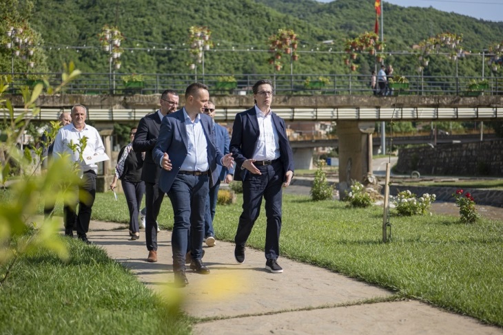 Пендаровски и Митовски го посетија и речното корито на Крива Река во урбаниот дел на градот, којшто надојдените води го поплавија, а општинските служби за помалку од 24 часа успеаја да го вратат во првобитната состојба, за што им честиташе лично и претседателот.