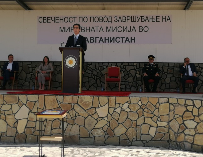 Ова го изјави претседателот на државата и врховен командант на вооружените сили Стево Пендаровски на свечената церемонија во касарната Илинден организирана по повод враќањето на последниот наш мировен контингент од Авганистан, на која се обрати и министерката за одбрана Радмила Шекеринска, а присуствуваа и началникот на Генералштабот Васко Ѓурчиновски, амбасадорите на САД Кејт Брнз и на Турција Хасан Мехмед Секизкок, генералите во Армијата и претставници на Воено – дипломатскиот кор.
