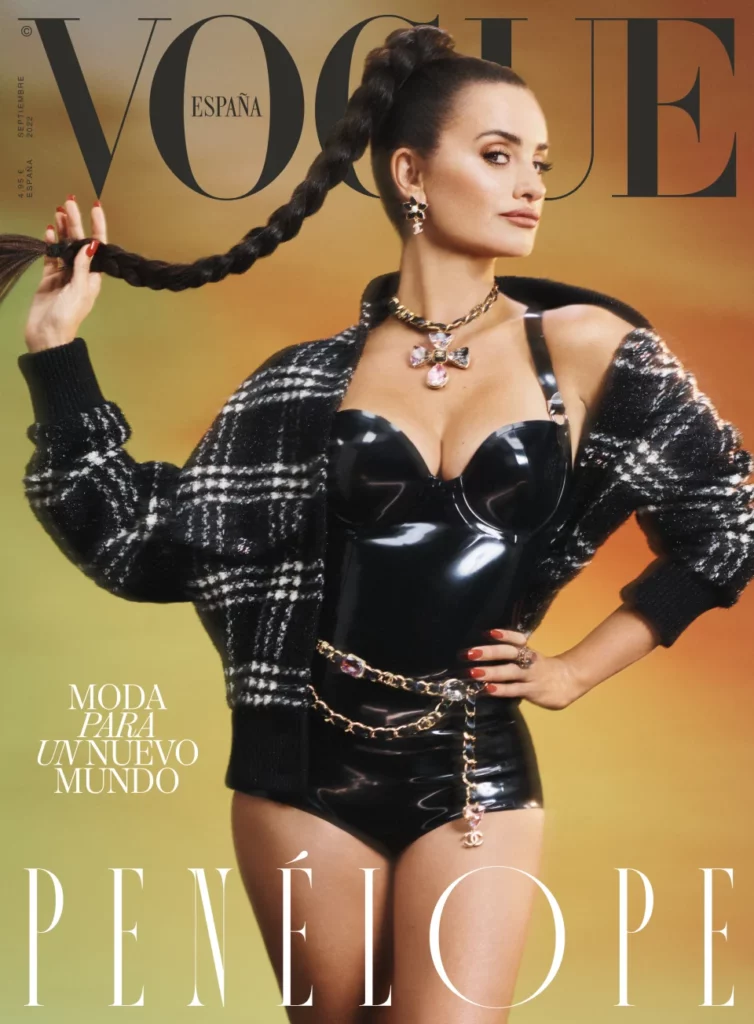 Шпанија– Пенелопе Круз стана најновата славна личност која се приклучи на трендот на латекс, носејќи црн „корсте“ од Ацуко Кудо на насловната страница на Vogue España.