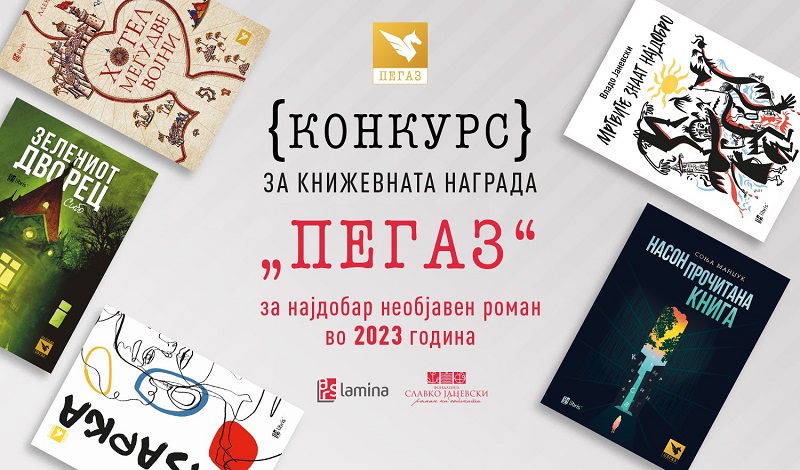 Петтиот конкурс за книжевната награда „Пегаз“, за најдобар необјавен роман на годината, ќе биде отворен до 30 септември 2023 година. На конкурсот, распишан од издавачката куќа „Арс Ламина“ и Фондацијата за унапредување и промоција на културните вредности „Славко Јаневски“, можат да конкурираат сите необјавени романи наменети за возрасни или за деца. Романите треба да бидат предложени од самите автори-кандидати за наградата, кои треба да ги достават своите ракописи во електронска форма во „ворд“ или во ПДФ-формат на електронската адреса [email protected].