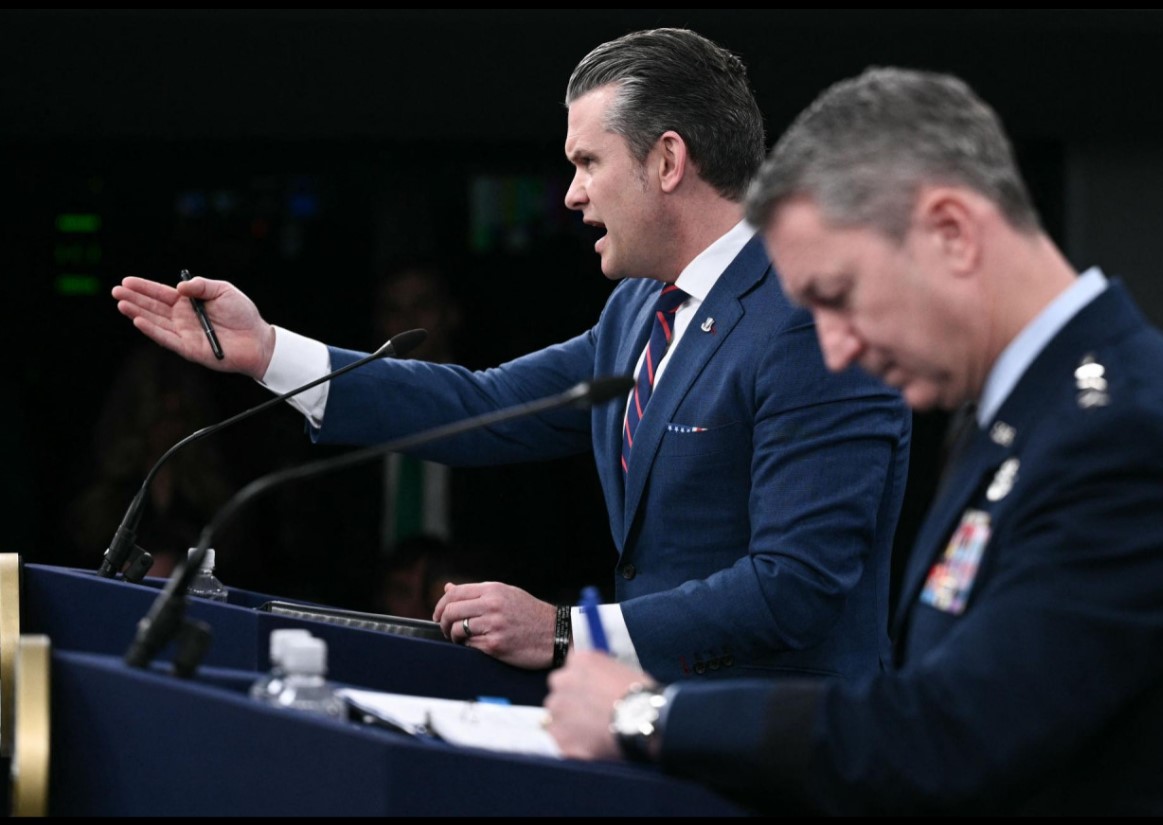Хегсет, заедно со генералот на воздухопловните сили Ден Кејн, претседател на Здружениот штаб на вооружените сили, го одржаа првиот брифинг за медиумите на администрацијата на Трамп по нападите во саботата. Претседателот Доналд Трамп, иако спроведе неколку телефонски интервјуа со поединечни новинари, не одговараше на прашања пред камера и објави само две видеа од почетокот на операцијата.