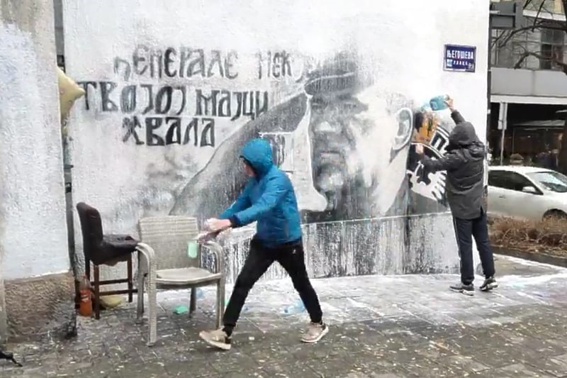 Неколку белграѓани се собраа околу муралот на воениот злосторник Ратко Младиќ на Врачар на улицата „Његошева“ со намера да го исчистат тој дел од Белград со отстранување на овој мурал од ѕидот, бидејќи сметаат дека на на овој мурал местото не му е таму.