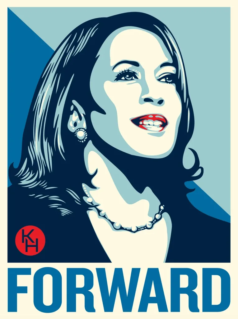 Шепард Фери, уметникот зад иконскиот постер на Барак Обама „Надеж“, во четвртокот откри нов постер за претседателската кандидатура на потпретседателката Камала Харис во 2024 година со нејзината сосема нова мантра: „Напред“.