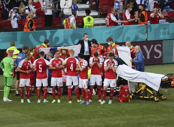 На фудбалскиот натпревар на ЕП 2020 меѓу Данска и Финска, капитенот на данската репрезентација Кристијан Ериксен падна на теренот и лежеше неподвижен.