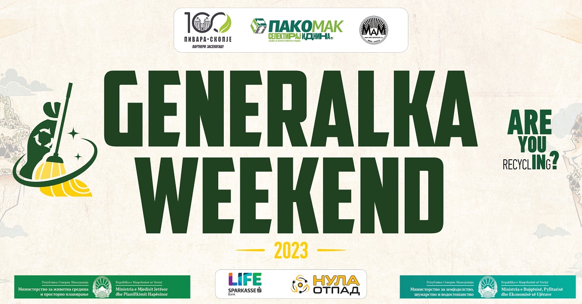 Продолжува стратешкото партнерство помеѓу Мен Енд Маунтен, Пивара Скопје и Пакомак, поддржано од Шпаркасе Банка и Нула Отпад, Министерството за животна средина и просторно планирање и Министерството за земјоделство, шумарство и водостопанство, во третата по ред еколошка акција – ГЕНЕРАЛКА ВИКЕНД. Акцијата годинава се спроведува во 53 општини и 450 училишта низ државата со повеќе од 16.000 волонтери.