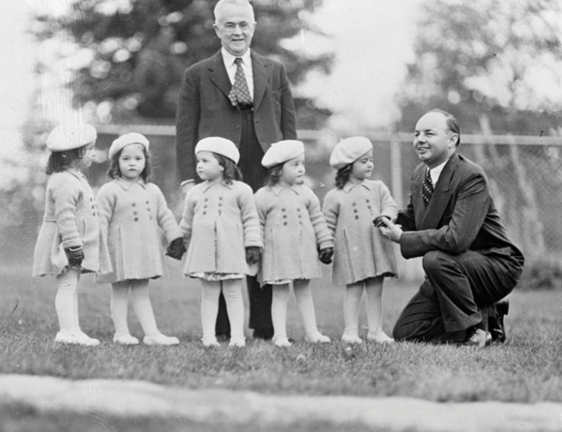 Петте идентични сестри, родени во Онтарио во 1934 година, на врвот на Големата депресија, беа првата позната петорка што го прежиева раното детство. Додека беа деца, близначките брзо станаа глобална сензација, глумејќи во играни филмови, појавувајќи се на насловните страници на списанија и промовирајќи производи од паста за заби до јаворов сируп.