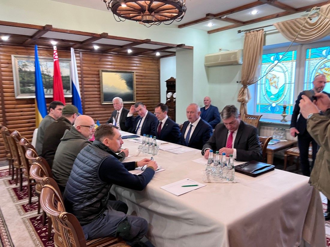 „Започнаа разговорите со руските претставници“ објави денеска на Твитер советникот на украинскиот претседател и член на украинската делегација во преговоите со Русија Микаило Подољак, изнесувајќи ги трите клучни прашања на средбата.