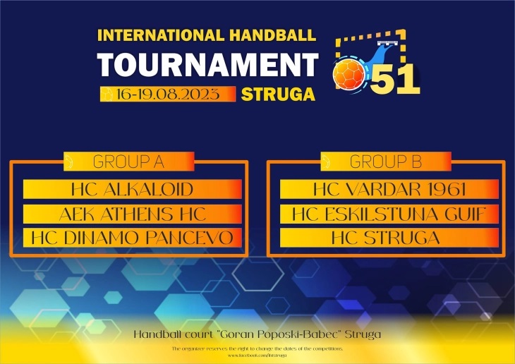 Љубителите на ракометот утре ќе може да ги погледнат дуелите меѓу АЕК Атина од Грција и Динамо Панчево од Србија, како и Ескилстуна Гуиф од Шведска и Струга.