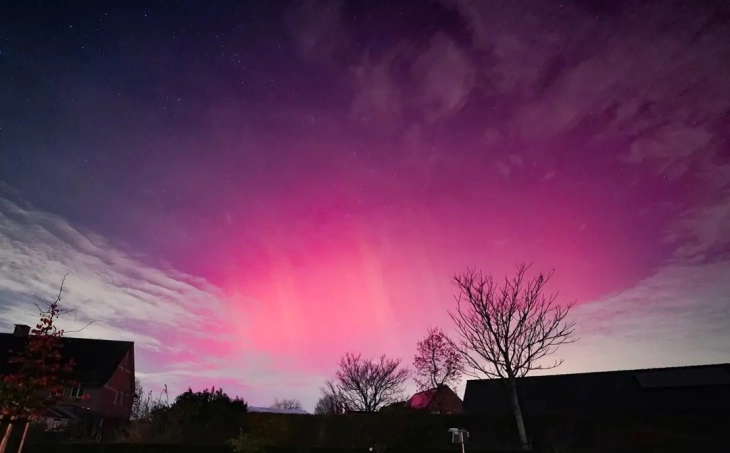 На социјалните мрежи се појавија фотографии на небото прекриено со розова светлина, за разлика од вообичаената зелена боја на Поларната светлина.