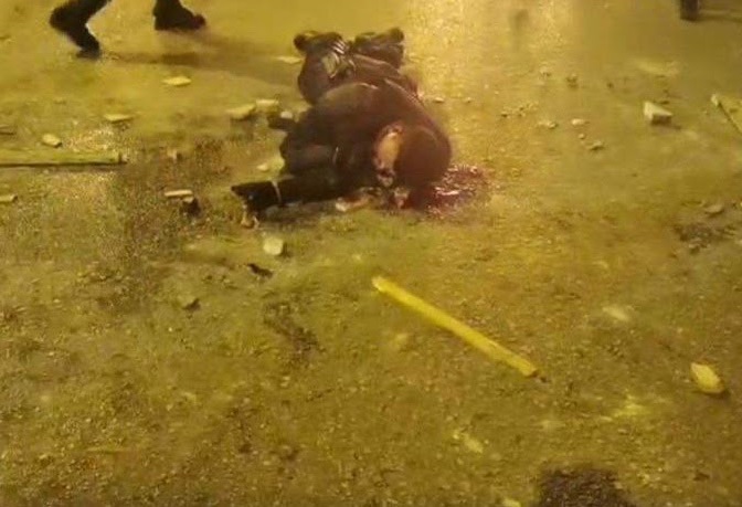Инцидентот се случи кога полицајци со мотори во движење беа нападнати од поголема група, а повредениот беше совозозач на последниот мотор, а маскираните лица откако го фрлија на земја, продолжија со ударите.