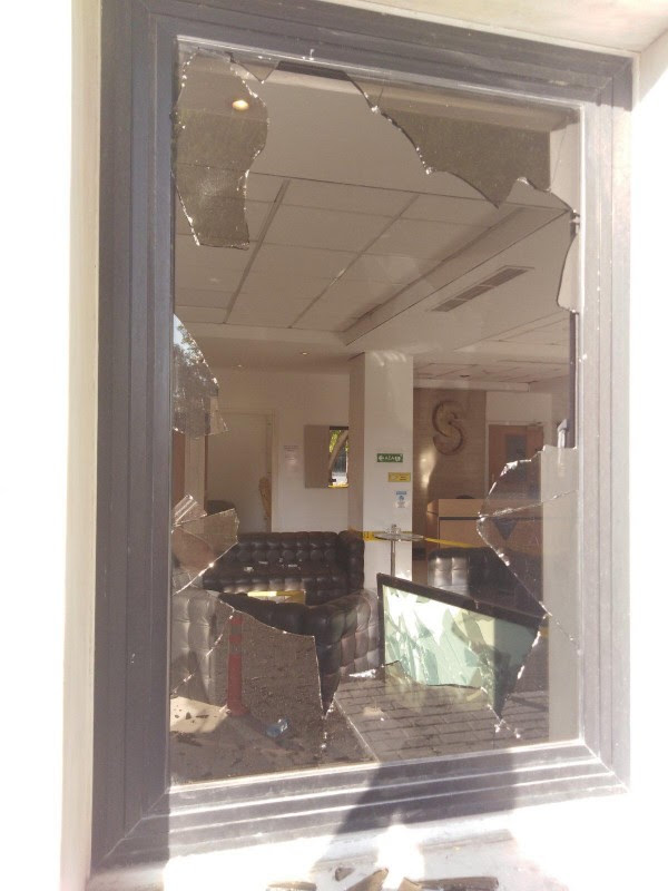 Демонстрантите го нападнаа објектот на групацијата „Диас“, во кој е сместена и телевизијата „Сигма“, запалија паркирани автомобили и нанесоа штета на влезот на зградата.
