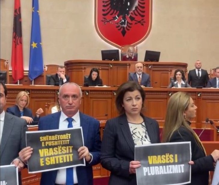 Под силниот звук на свирежите, претседателката на Собранието Линдита Никола директно отиде на гласање на точките од дневниот ред, а на седницата присуствуваше и премиерот Еди Рама.