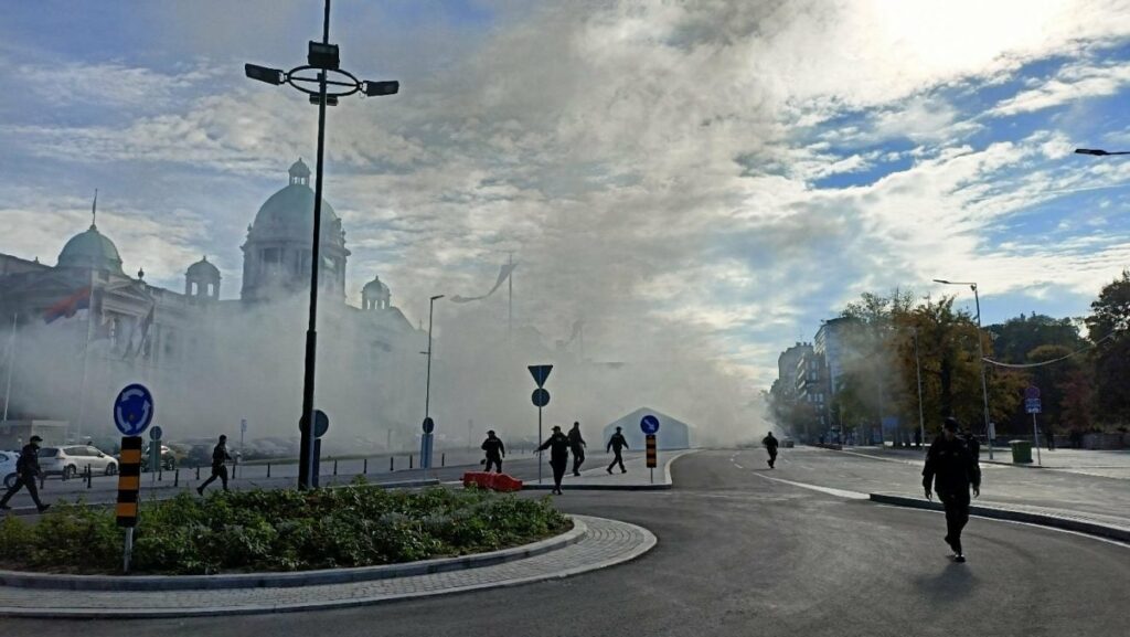Репортерот на „Данас“ известува дека од некои шатори сè уште се издига чад и дека голем број полицајци го обезбедуваат просторот околу Пионерскиот парк, како и српското собрание, до кои не може да се пристапи. Меѓу нив се и припадници на Специјалната антитерористичка единица (САЈ).