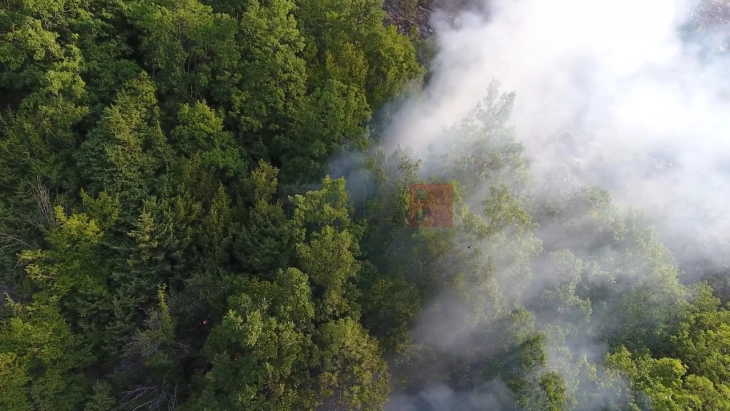 Според него, за да се спречи ширење на пожарот во борова шума, како воздушна поддршка е испратен еден полициски хеликоптер „Ми 171“.
