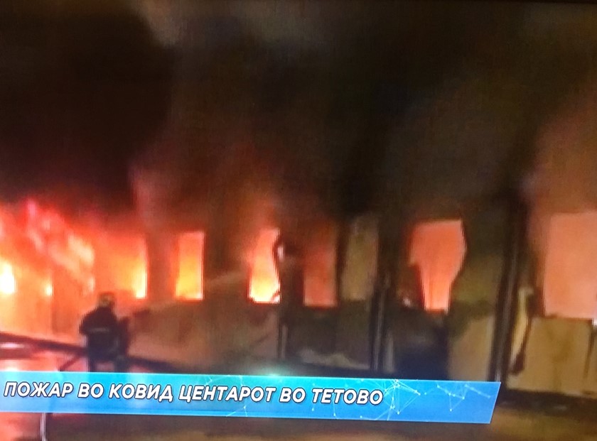 Се запали Ковид-центарот во Тетовска болница. На местотото интервенираа пожарните екипи од градот, а се упатија и екипи од Скопје. Во моментов не се познати причините за пожарот, но болни и изгорени повредени се изнесуваат од зградата во колички. Страшни слики и снимки се споделуваат на социјалните мрежи – се гледаат пламени и се слушаат лелеци. Зградата е целосно изгорена, а неофицијално има жртви во пожарот – и пациенти, и здравствени работници. Неколку жртви може да се видат на видеата кои се објавуваат на социјалните мрежи на кои се гледа дека луѓе носат жртви на кревети покриени со бели чаршави.