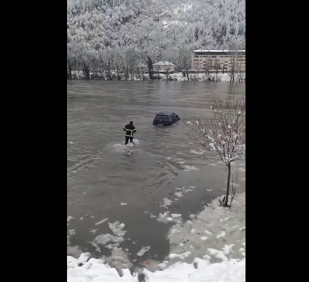 Токму во овој град еден пожарникар стана познат. Како што може да се види на видеото, тој влегол во прелеаната река Дрина и стигнал до автомобилот што бил заглавен.