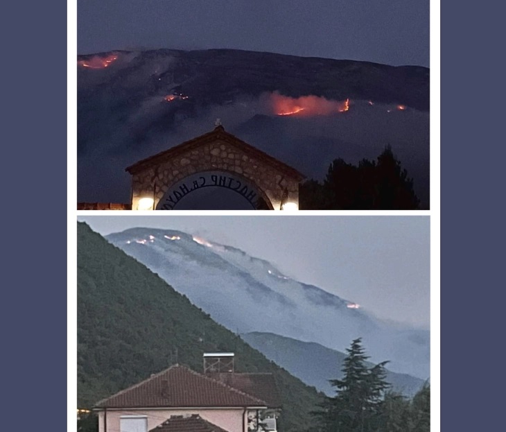 Навечер може да се види и пламен на врвовите на планината во близина на границата кон Албанија, додека во текот на денот погледот кон планината е оневозможен од чад.