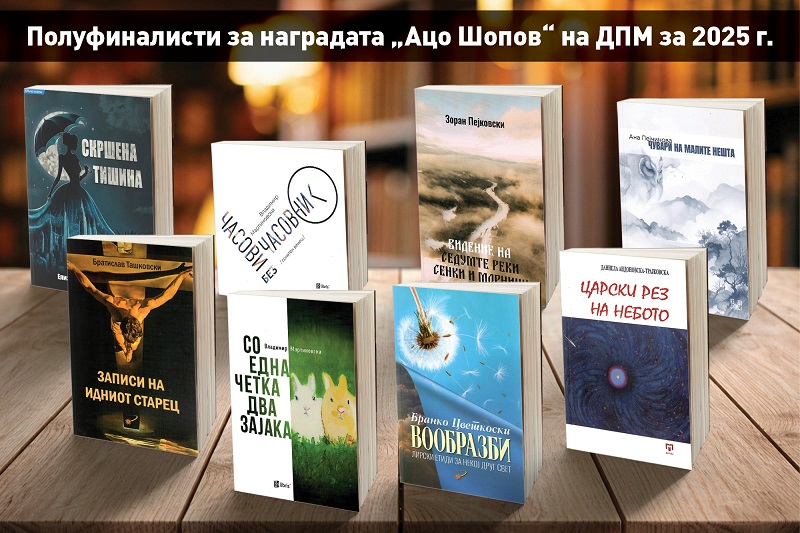 Од вкупно 16 кандидати за наградата „Ацо Шопов“ на ДПМ, за најдобра поетска збирка објавена во 2025 г., во полуфиналниот круг влегуваат следните 8 наслови: