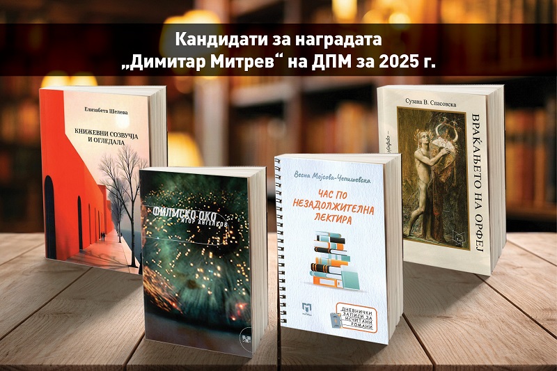 За наградата „Димитар Митрев“ на ДПМ за 2025 г. се пријавени четири дела, кои воедно се сметаат за финалисти: