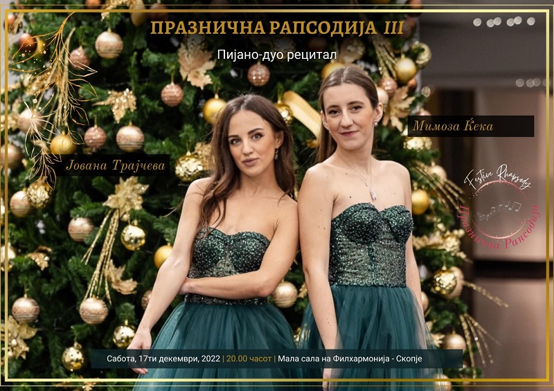 Во камерната сала на Филхармонија вечер ќе се одржи новогодишниот концерт на Пијано дуо Мимоза и Јована – „Празнична рапсодија 3“.