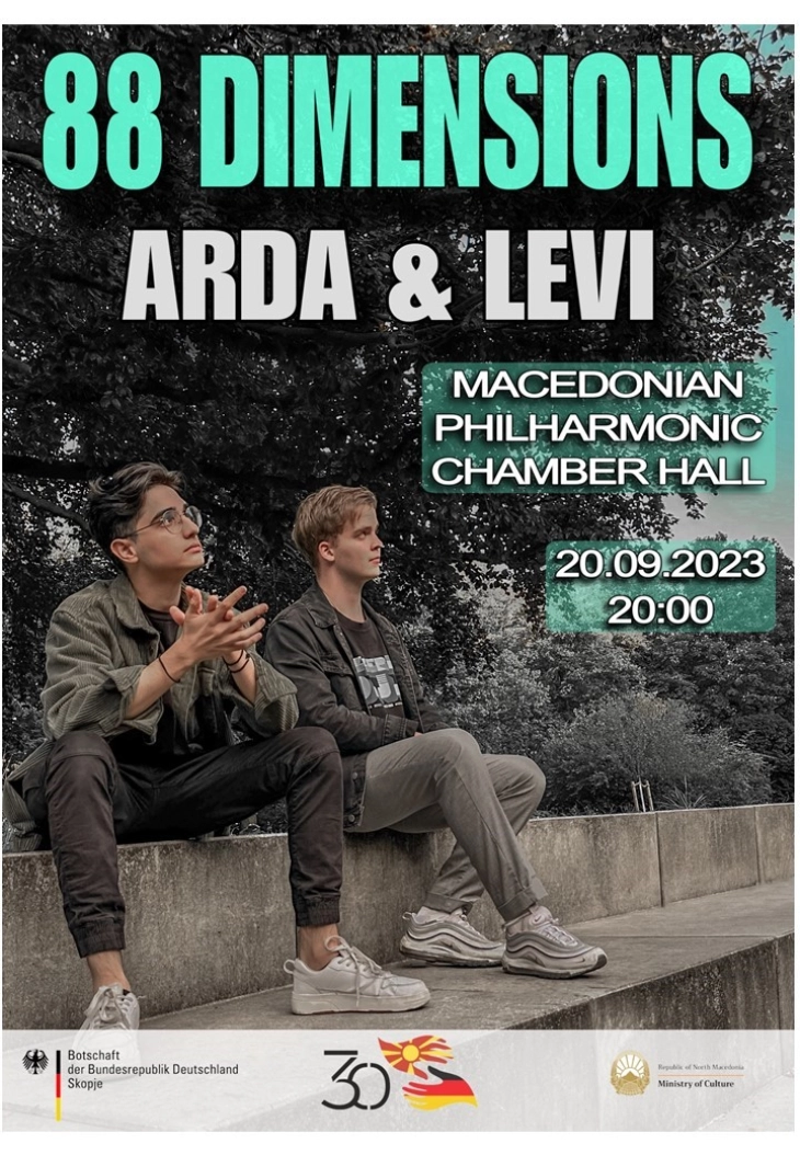 Почнува одбележувањето на 30 години од германско-македонските дипломатски односи. По овој повод, пијанистите Арда Мустафаоглу и Леви Шехтман, премиерно во Камерната сала на Македонската филхармонија во Скопје, ќе го претстават проектот „88 димензии“.