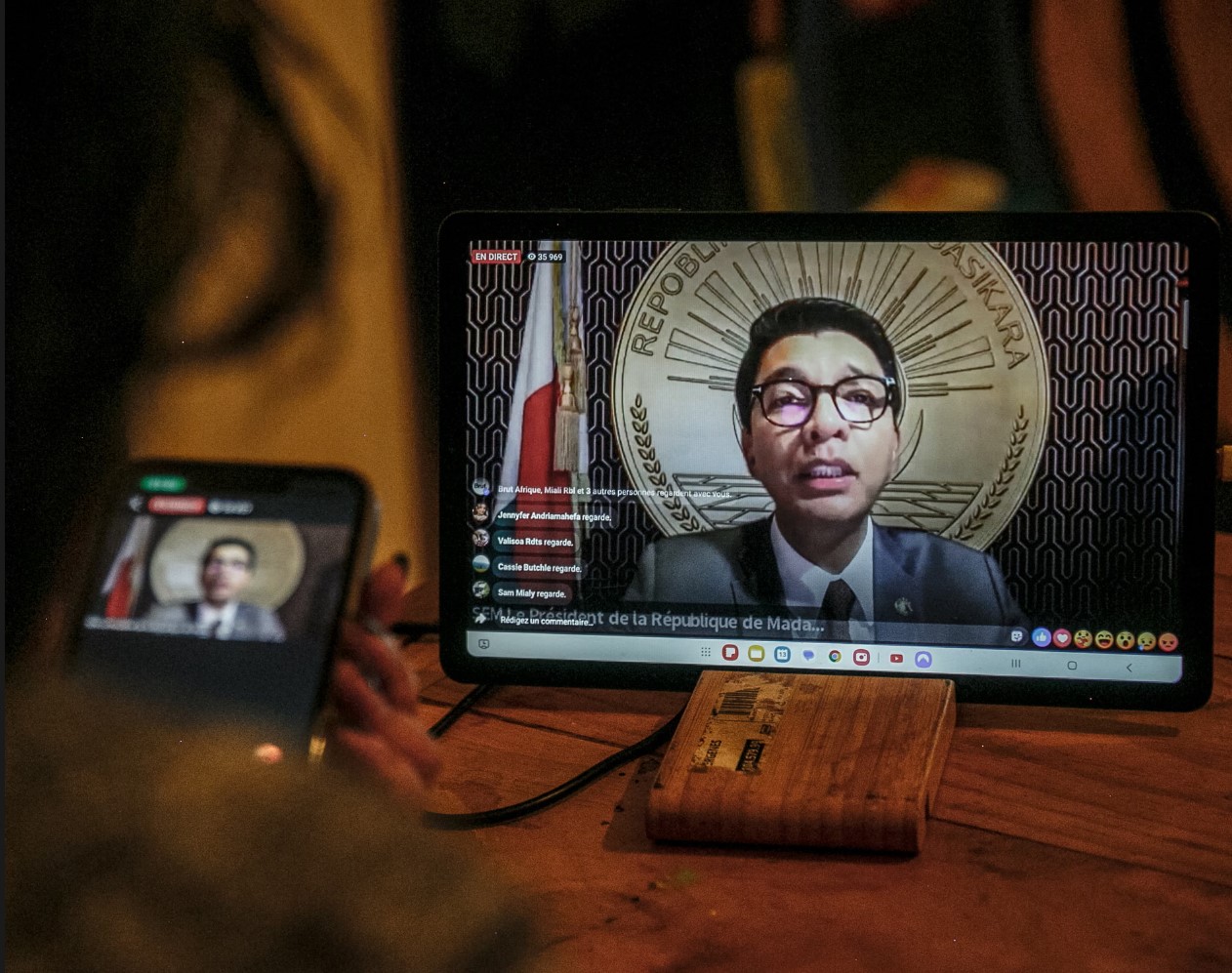 Претседателот на Мадагаскар, Андри Ражоелина, изјави дека ја напуштил земјата од страв за својот живот по воениот бунт, но не ја објави својата оставка во говорот емитуван на социјалните мрежи доцна во понеделник од непозната локација.