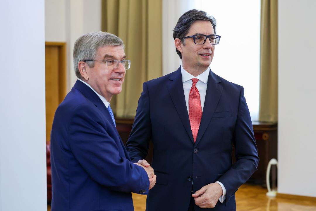 Претседателот на МОК, Томас Бах, во Скопје. Се сретна со Пендаровски