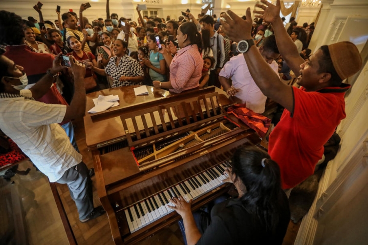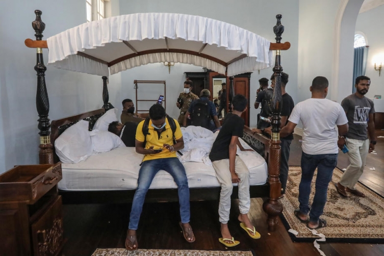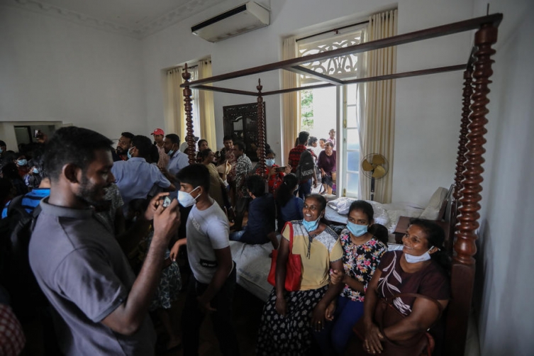 Раџапакса (73) ја напушти службената резиденција во Коломбо непосредно пред во резиденцијата да упаднат десетици илјади демонстранти, и се обиде да отпатува во Дубаи, наведоа надлежните. Раџапакса како претседател има имунитет од апсење, а се верува дека сака да земине во странство пред да даде оставка за да ја избегне можноста да биде уапсен.