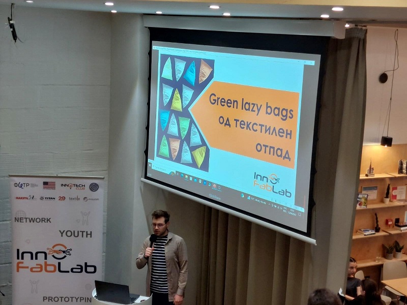 Големо внимание на настанот привлекоа еколошките lazy bags, разработени од тимот „Green lazy bags oд текстилен отпад“ кои беа изложени и гостите ги тестираа истите. Станува збор за производи кои се наполнети со различни полнила, вклучително и текстилен отпад од текстилната индустрија кој вообичаено завршува на депонија и креира големо загадување.