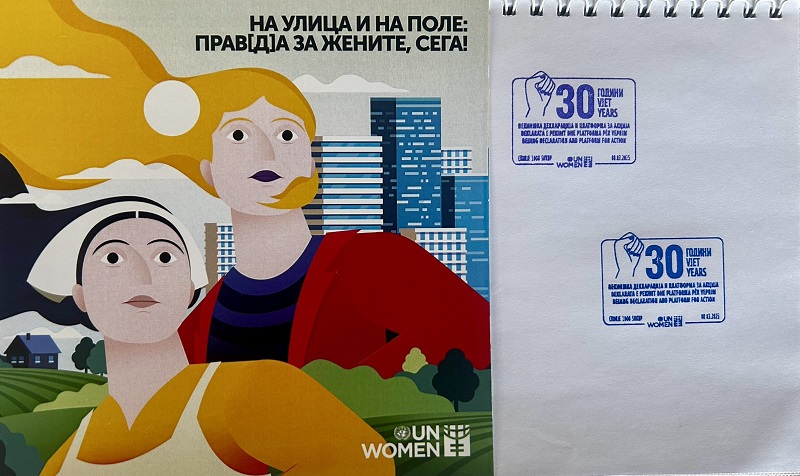 По повод Меѓународниот ден на жената и 30-годишнината од Пекиншката декларација и Платформата за акција, UN Women во Северна Македонија, во соработка со Пошта на Северна Македонија, претстави специјален пригоден поштенски жиг. Овој симболичен гест ја истакнува посветеноста на земјата кон родовата еднаквост и континуираните заложби за обезбедување еднакви можности за жените и девојчињата.