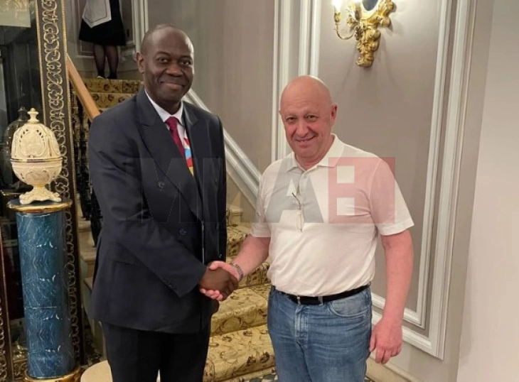 Директорот на „Рускиот дом“ во Централноафриканската Република, Дмитриј Сити, денеска објави фотографија на која Пригожин позира со непознат гостин од Африка, пренесува порталот Фонтанка од Санкт Петерсбург.