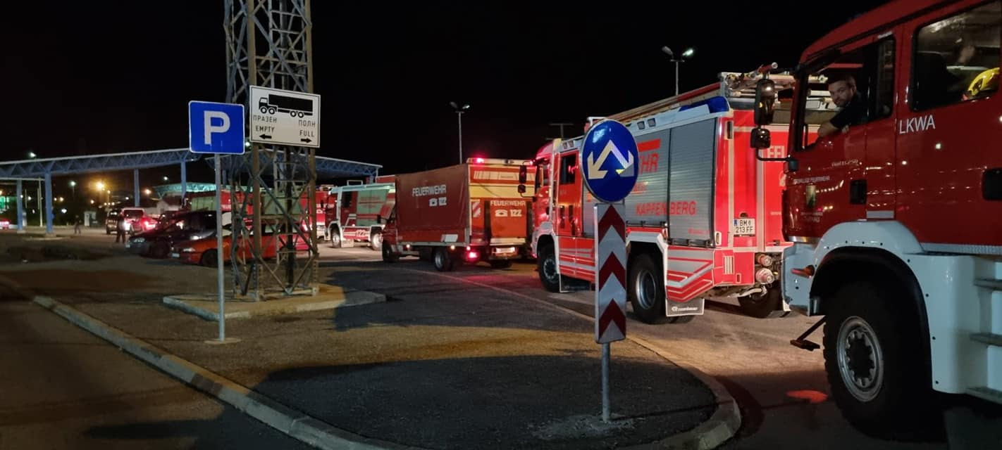 Конвојот беше пречекан од претставници на Дирекција за заштита и спасување на граничниот премин Табановце и упатен во една од најкритичните места опфатени со пожари во источниот дел на државата.