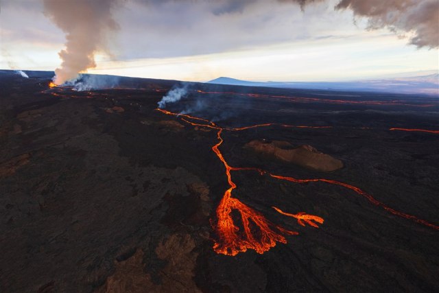 Ерупцијата на вулканот Килауа на Хаваите продолжи, соопшти денеска Геолошкиот завод на САД за следење на вулкаснки активности.