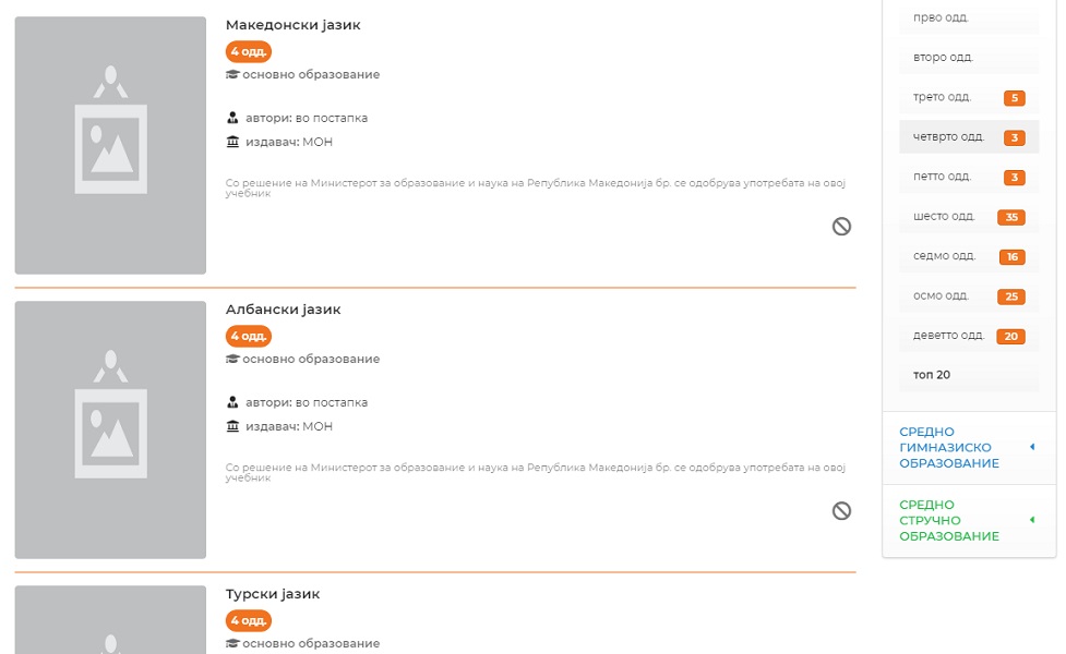Но, кога ќе се појде на оваа страница, и се одбре основно образование, четврто одделение, сите учебници се наведени, но на располагање нема податок. односно, поставени се само три учебници за чатврто одделение и тоа изборните предмети: Јазик и култура на Бошњаците, Јазик и култура на Власите и Јазик и култура на Ромите.