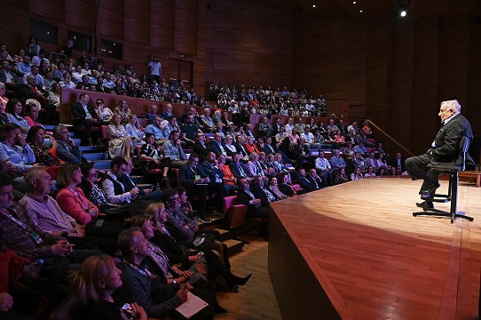 Во преполната сала во Македонската филхармонија, д-р Адижес зборуваше за премостување на предизвиците и креирање нови можности за раст и развој во услови на брза глобална транзиција предизвикана од технолошкиот развој. Споделувајќи ги искуствата од неговата соработка со голем број светски компании од различни индустрии, д-р Адижес на овој престижен настан се фокусираше на промената како константа, на клучните нешта што лидерите треба да ги имаат на ум кога ги формираат своите тимови, истакнувајќи дека постојаната посветеност кон знаење и работењето со пасија резултираат со успех.