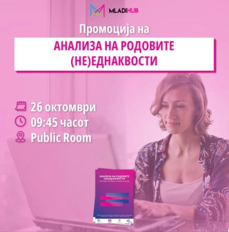 Во организација на Националниот младински совет на Северна Македонија – НМСМ и Мрежата Стела денеска ќе биде промовирана Анализа на родовите (не)еднаквости во Северна Македонија.