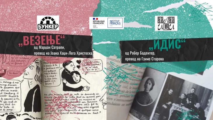Македонските преводи на француските дела „Идис“ од Робер Бадентер, во превод на Гзиме Старова, издание на „Или-или“ и „Везење“ од Марџан Сатрапи, во превод на Јоана Хаџи-Лега Христоска, издание на „Бункер“, вечер во 18 часот ќе бидат промовирани во просториите на Францускиот институт во Скопје.