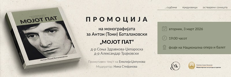 Промоција на монографијата „Мојот пат“ – посветена на една од позначајните личности во историјата на македонскиот балет Антон (Тони) Баталаковски, ќе се одржи вечер со почеток во 19:00 часот, во фоајето на Националната опера и балет.