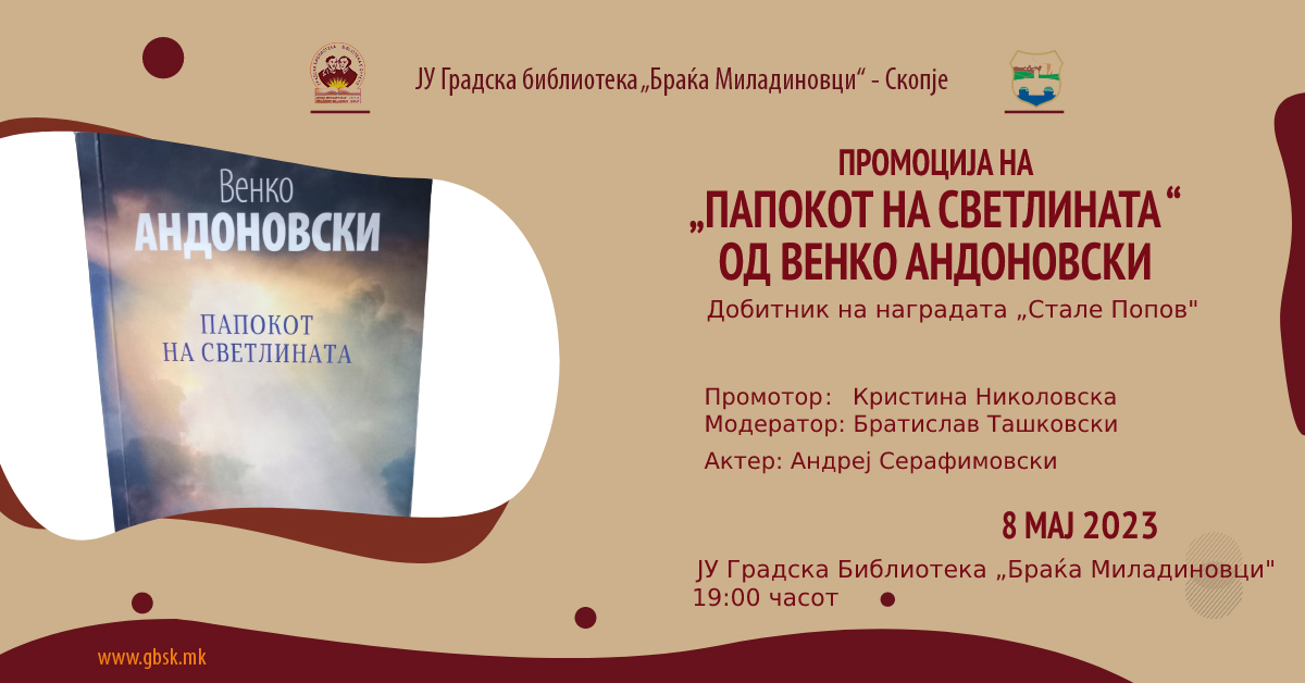 Промоција на „Папокот на светлината“ од Венко Андоновски во Градската библиотека во Скопје