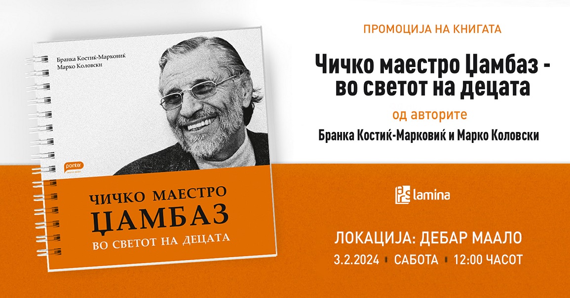 На 3 февруари (сабота), со почеток во 12 часот ќе се оддржи промоцијата на книгата „Чичко маестро Џамбаз – во светот на децата“ во Дебар Маало, на улица „Орце Николов“, посветена на композиторот и диригент Александар Џамбазов, од познатите македонски музички публицисти Бранка Костиќ-Марковиќ (автор на воведниот текст) и Марко Коловски (автор на нотографиите). Ова издание претставува збирка на песни од маестро Александар Џамбазов, еден од нашите најистакнати македонски композитори, диригенти и втемелувачи на македонската популарна и детска музика. Изборот на композициите, кој опфаќа 52 песни за деца од предучилишна и училишна возраст, е направен од страна на самиот Џамбазов за време на неговиот живот.