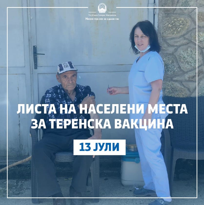 Теренската вакцинација продолжува утре, сподели министерот за здравство Венко Филипче, во овие населени места во секоја од следните општини:
