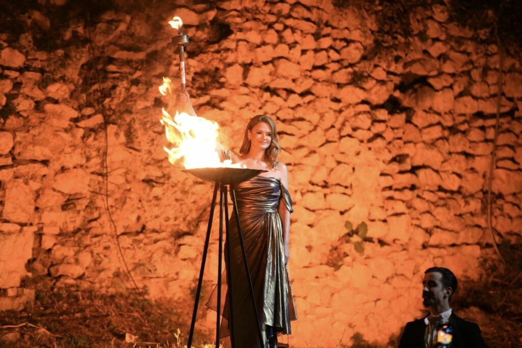 Вечерна тоалета без ракави во црна боја, која заедно со деталите во косата, носат во себе неколку слоеви на симболика поврзани со Охрид, избра првата дама, проф. д-р Елизабета Ѓоргиевска за отворањето на 63. Охридско лето што синоќа се отвори под покровителство на претседателот Пендаровски.