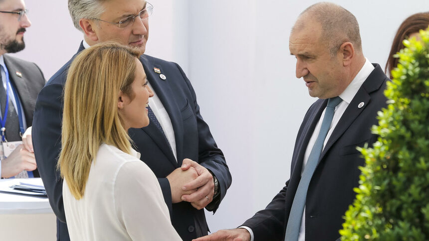 Бугарскиот претседател Румен Радев ѝ се пожалил на претседателката на Европскиот парламент, Роберта Мецола, дека било недопустливо земји кандидати за членство во ЕУ да се мешале во содржина на европски документи. Тоа е наведено во соопштението пренесено од канцеларијата на Радев за неговата средба на самитот на Европската политичка заедница во Кишињев, Романија.