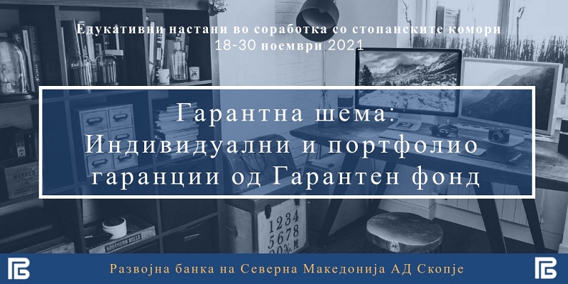 Развојна банка на Северна Македонија АД Скопје, во соработка со најголемите комори во државата, започнува со серија едукативни настани за портфолио и индивидуални гаранции од Гарантниот фонд. Целта на настаните е запознавање со корисностите на домашните микро, мали и средни трговски друштва и големите извозни компании од гарантната шема.