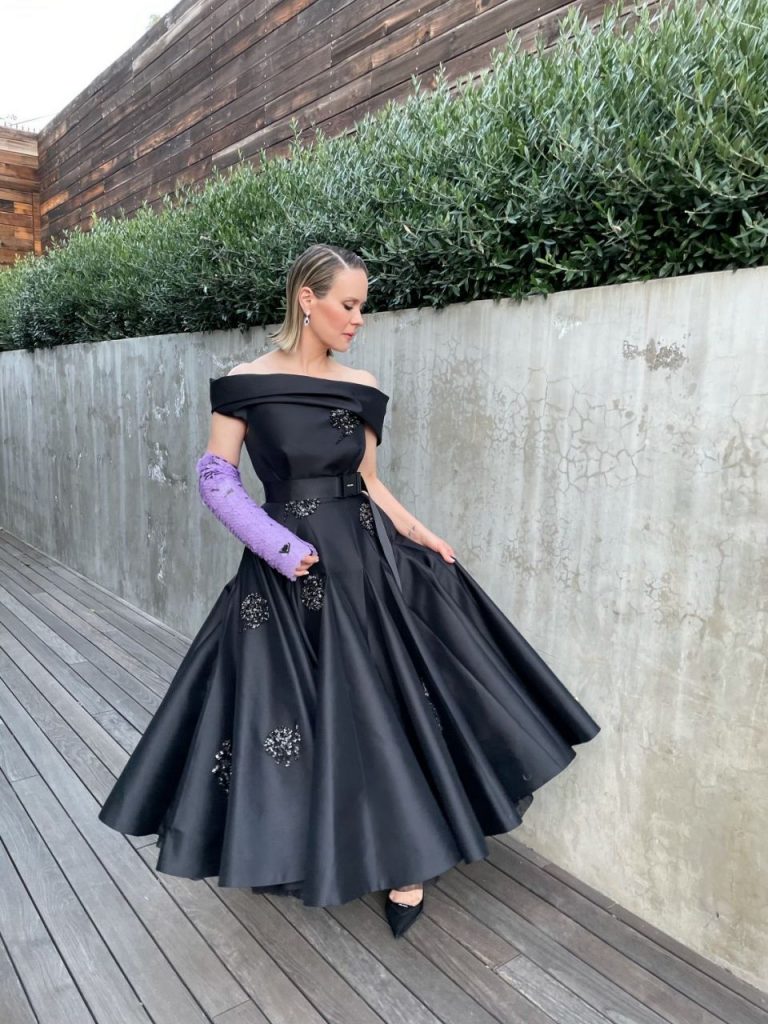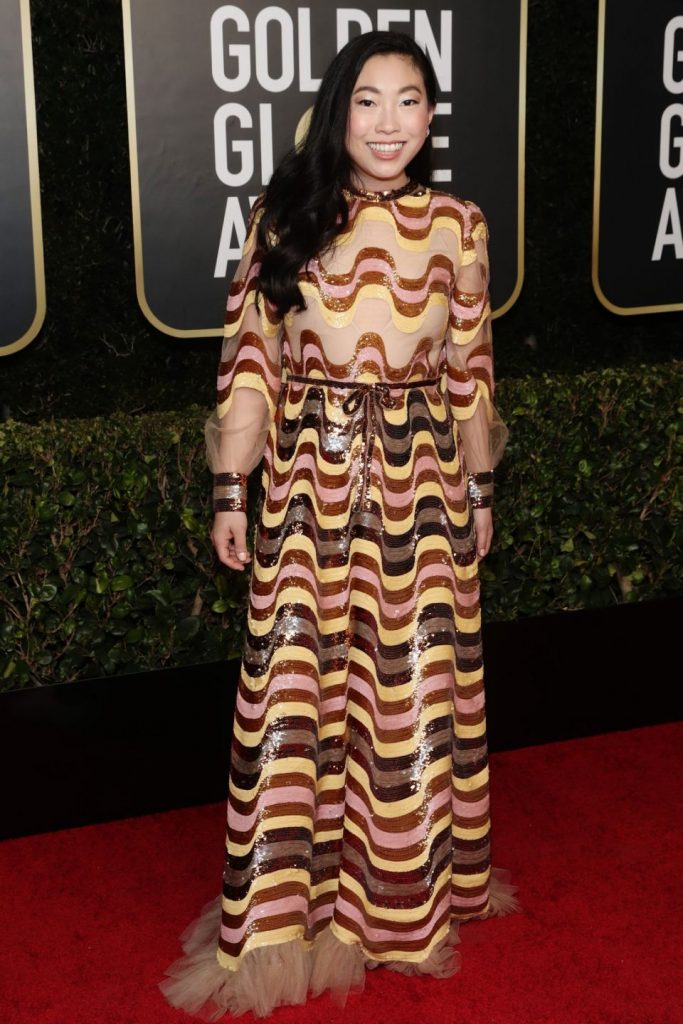 САД– За првите виртуелни Златни глобуси, Реџина Кинг го избра Луј Витон. Оскаровката, номинирана синоќа за режија на „Една ноќ во Мајами“, носеше асиметрична тоалета од црна свила. Тоалетата се шиеше 350 часа , вклучувајќи 20.000 сребрени светки, 12.000 златни светки и 8.000 црни светки.