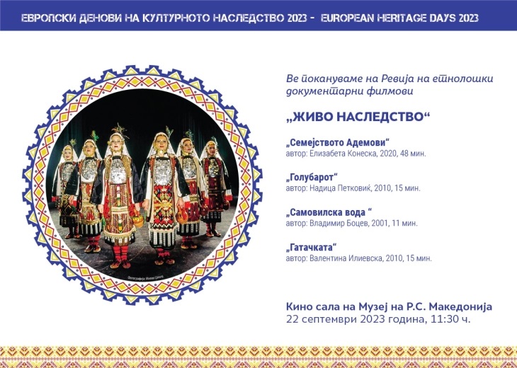 Во Музејот на Северна Македонија денеска со ревијата на етнолошки документарен филм ќе биде означен почетокот на Европските денови на културното наследство 2023.