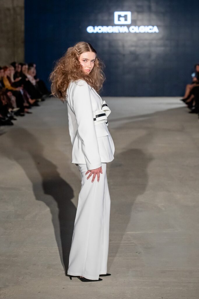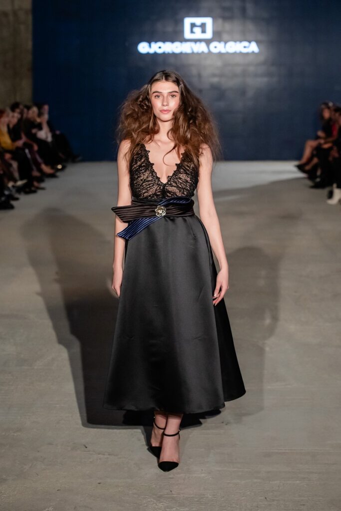 Ѓоргиева, во најубаво светло, се претстави со колекција која што ја потврдува силата на индивидуалниот потпис и интимниот пристап кон формата. Со силуети што балансираат меѓу структура и поетика, таа уште еднаш покажа дека македонскиот дизајн може да биде истовремено личен, женствен и глобално релевантен. Од нежни пастелни тонови до моќната црна нијанса и рафинирани детали, “ THE NOW ” е модна визија каде што елеганцијата се среќава со авангарда. (Л.С.)