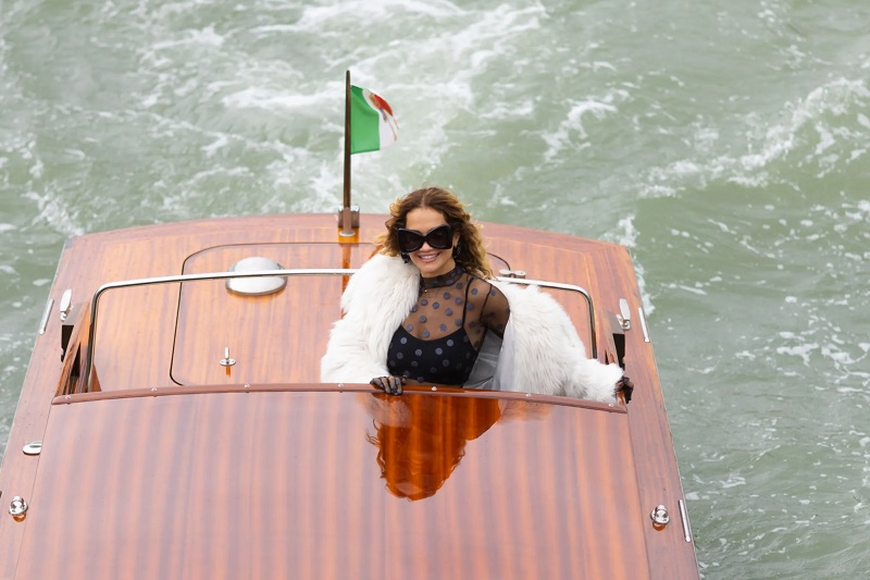 32-годишната Ора изгледаше многу расположена додека крстареше по венецијанскиот канал, позирајќи им на фотографите на патот користејќи го чамецот како реквизит. Мавташе малку, малку се наведна, но сè на сè убаво се забавуваше и уживаше во вниманието што го добиваше. Како да не биде, кога во оваа предизвикувачка комбинација, која британските медиуми веќе ја фалат со сите ѕвона и свирежи, го привлече секое око. И додека некои критичари можеби тврдат дека таа малку претерала со оглед на настанот на кој се појавила, ретко кој ќе оспори колку сензационално изгледа пејачката.